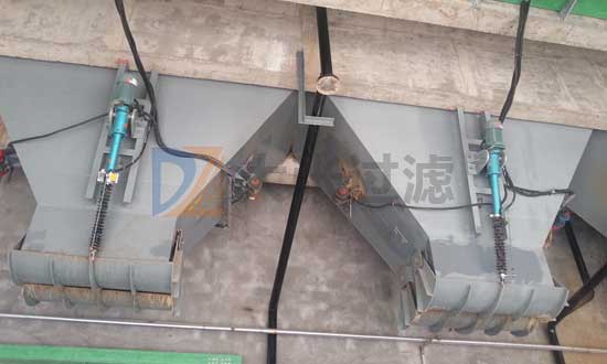 壓濾機過濾完成后,可將濾餅卸落至配套的儲泥斗,便于集中裝運。泥斗的大小可以根據壓濾機型號和客戶要求定做,打開方式分為電動和氣動兩種。